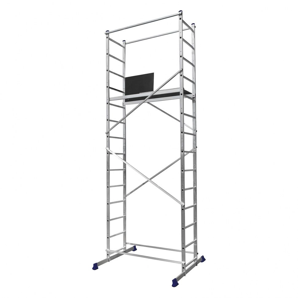 На опорах имеются противоскользящие накладки из двухкомпонентного пластика, поэтому вышка-тура не смещается во время работы.