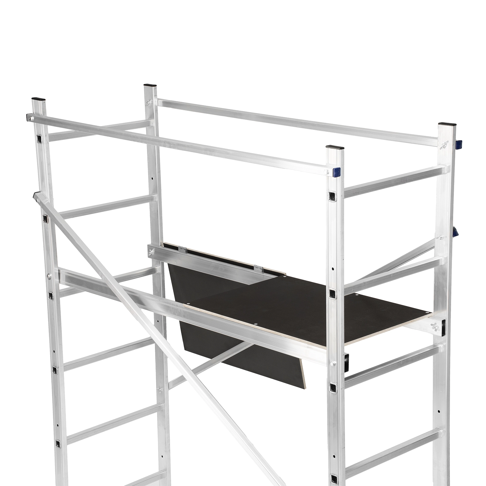 Траверсы регулируются, за счет чего вышку можно ставить вплотную к стене.