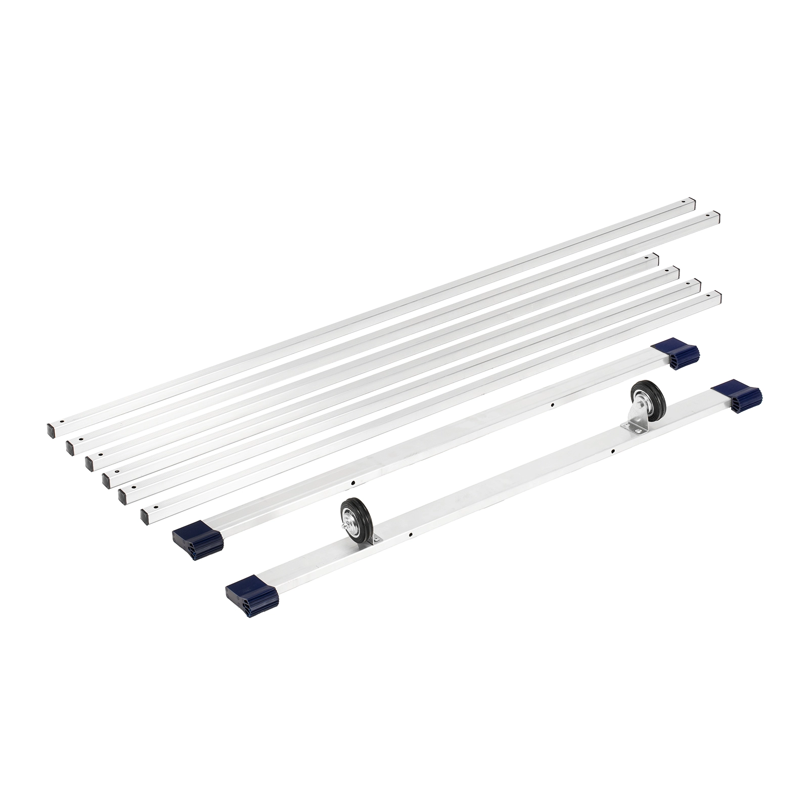 Опоры и перекладины выполнены из прессованных алюминиевых профилей, а значит, конструкция прочная и одновременно легкая.