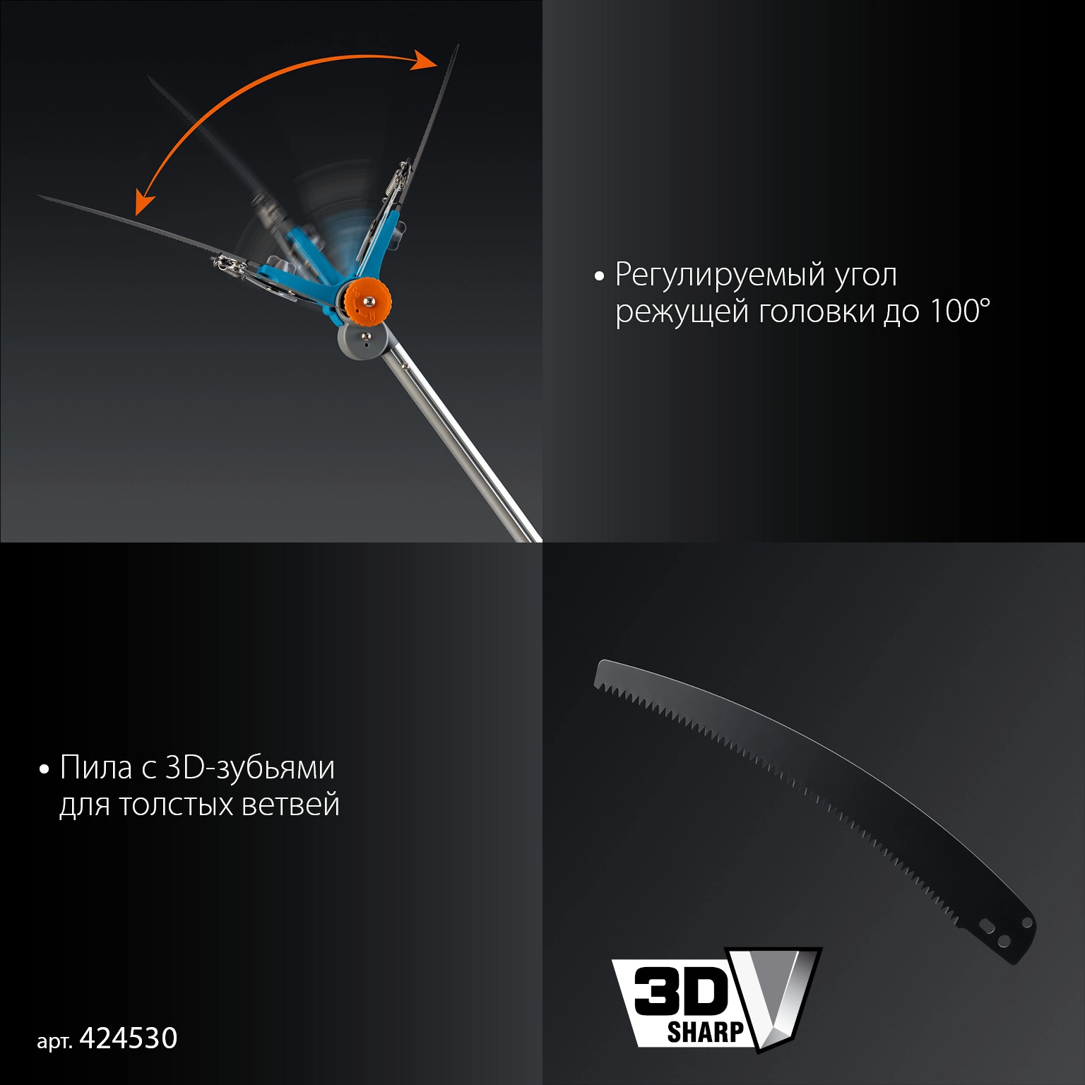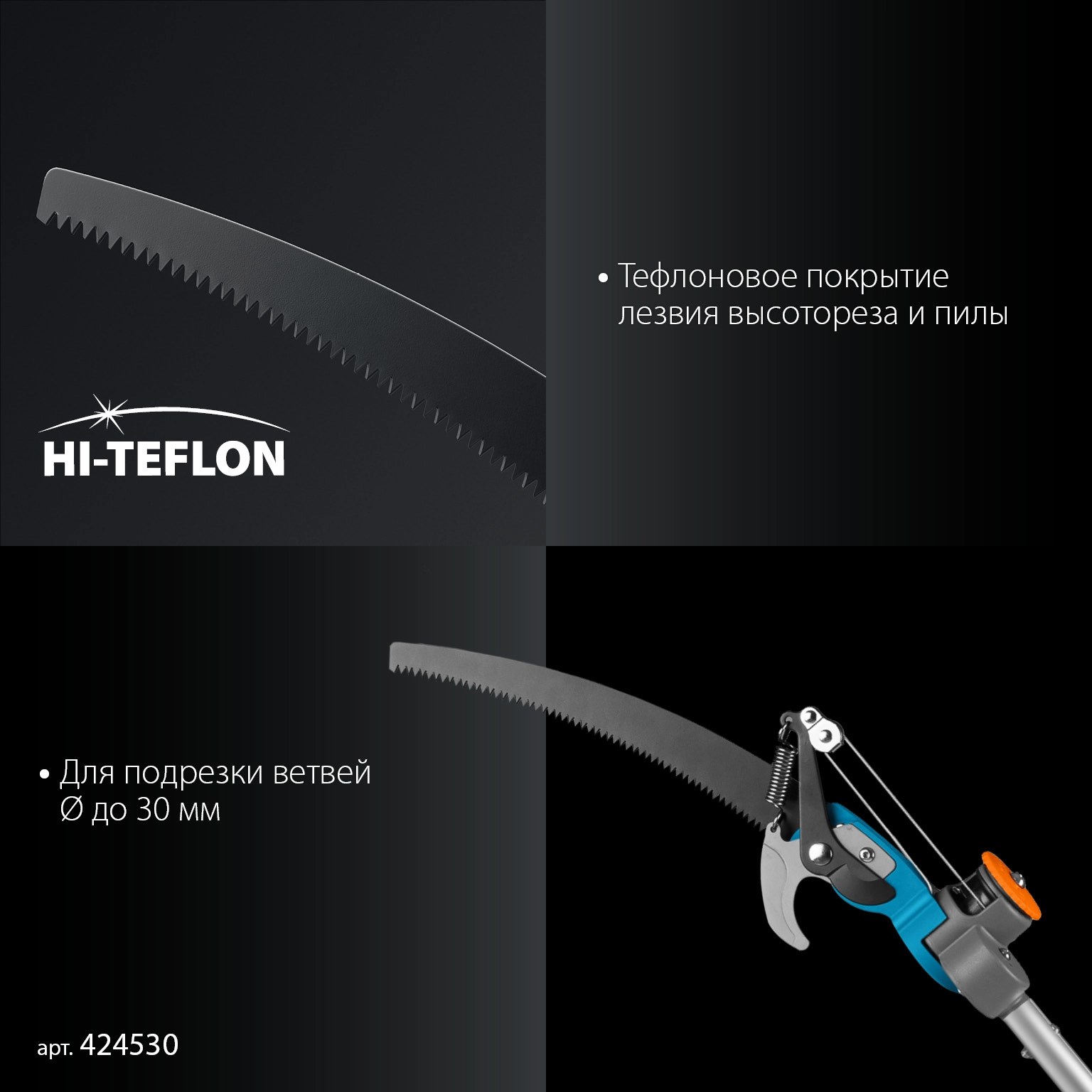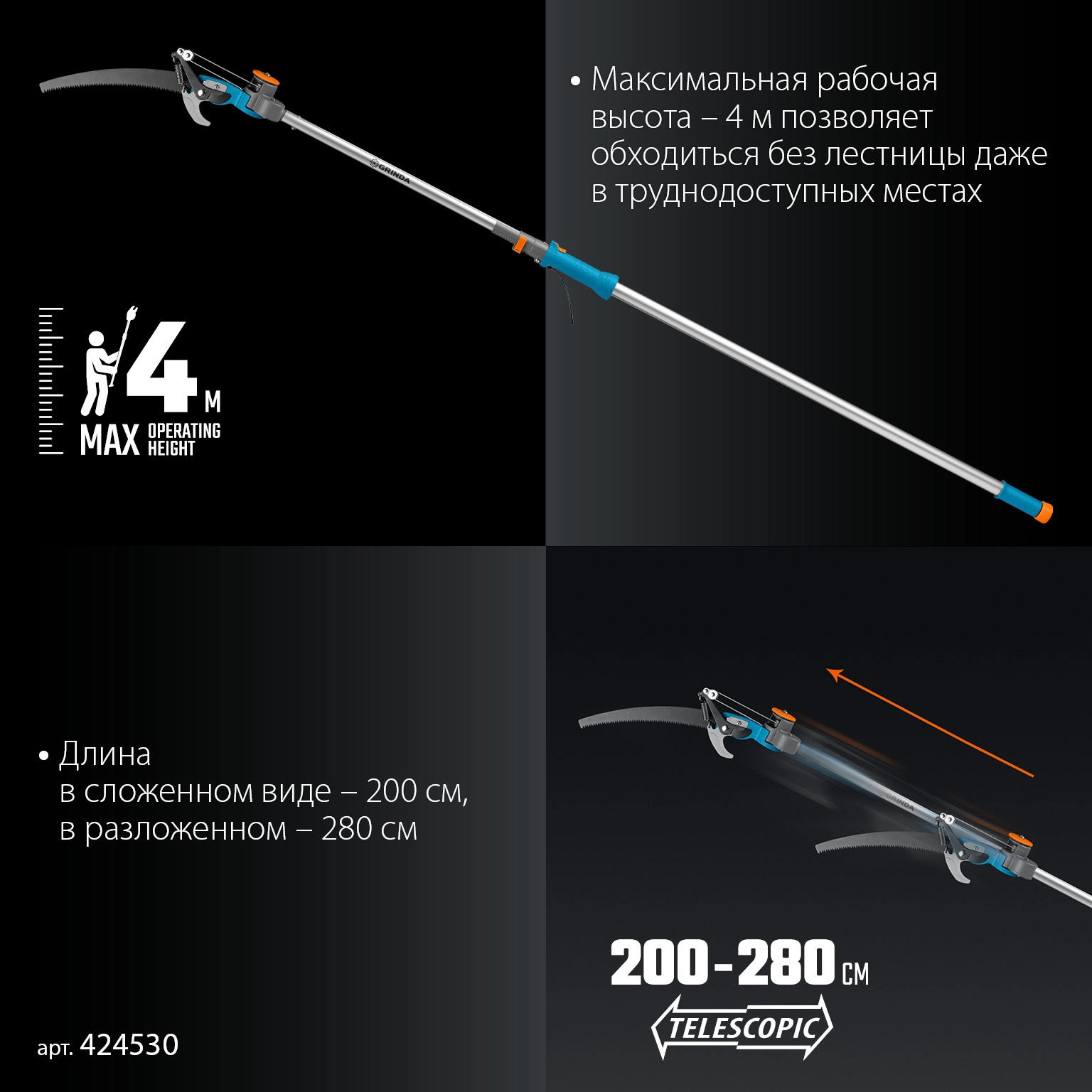 ПроизводителиВысоторез телескоп,лезвия нерж стали, длина 2-2,8 м, пила 350мм, рез до 30мм,GX-4000 (424530) GRINDA