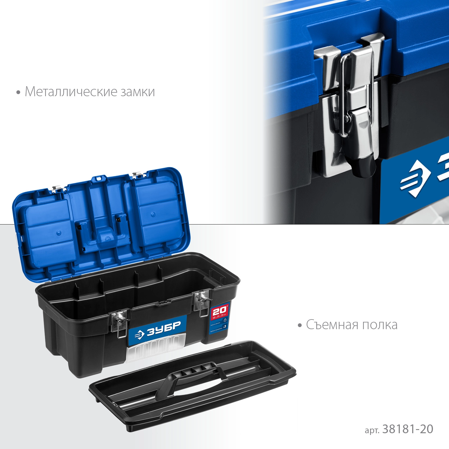 ПроизводителиЯщик для инструмента, пластиковый, 20", 508x256x225 мм, металл. замки (38181-20) ЗУБР