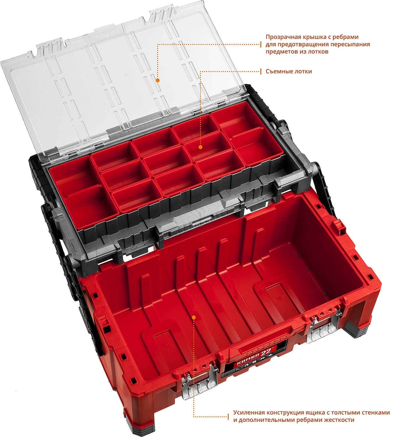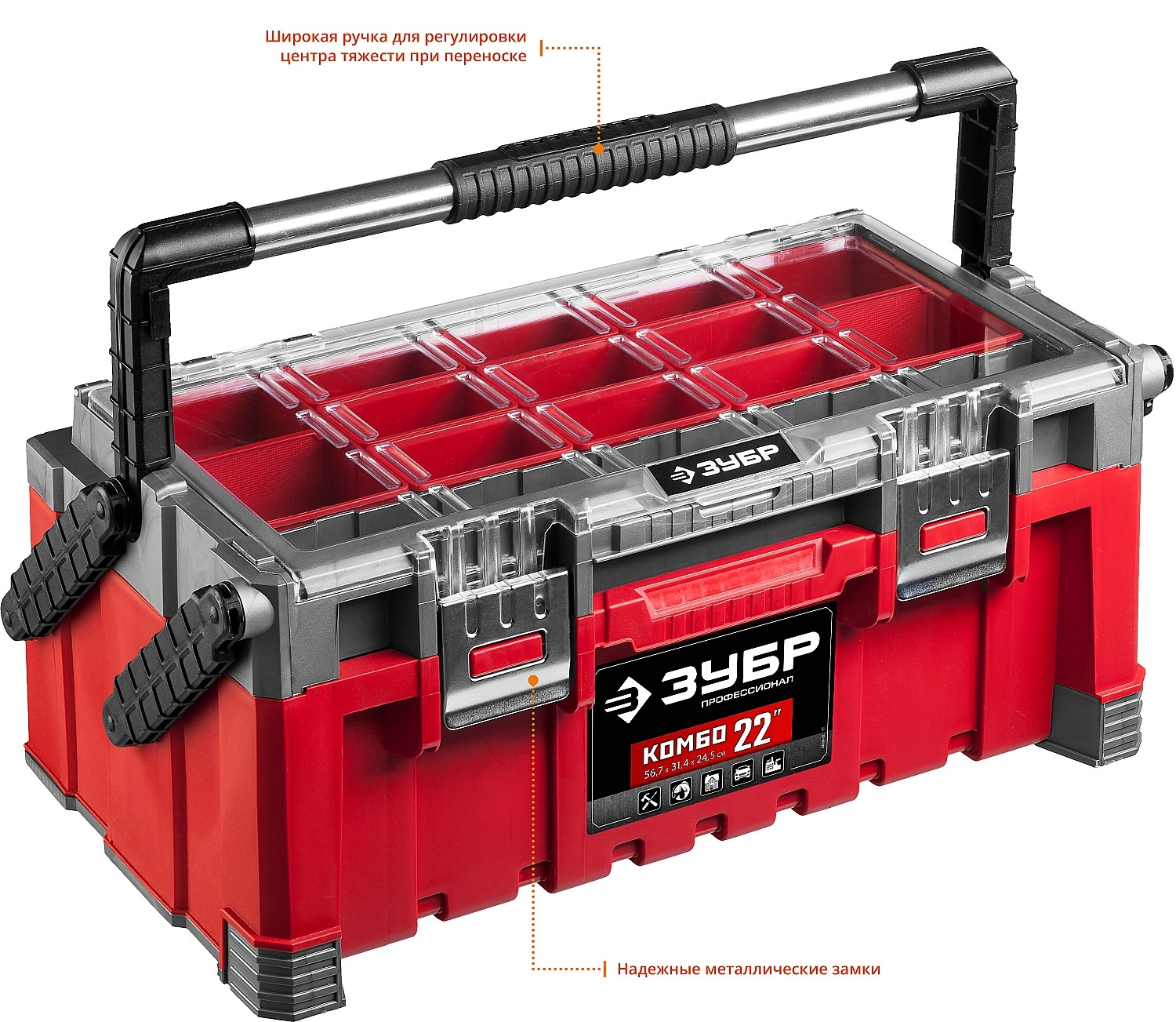 ПроизводителиЯщик-органайзер для инструмента "КОМБО-22" пластиковый, Профессионал (38138-22_z01) ЗУБР