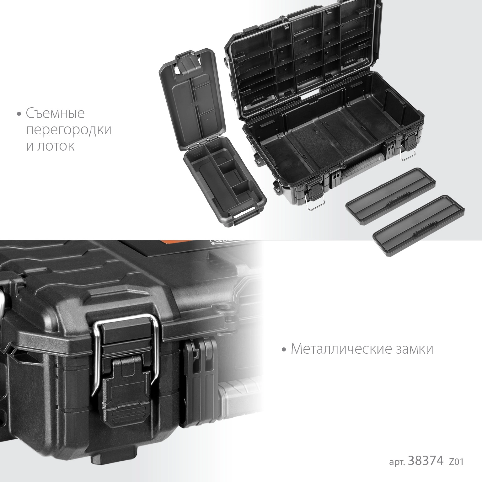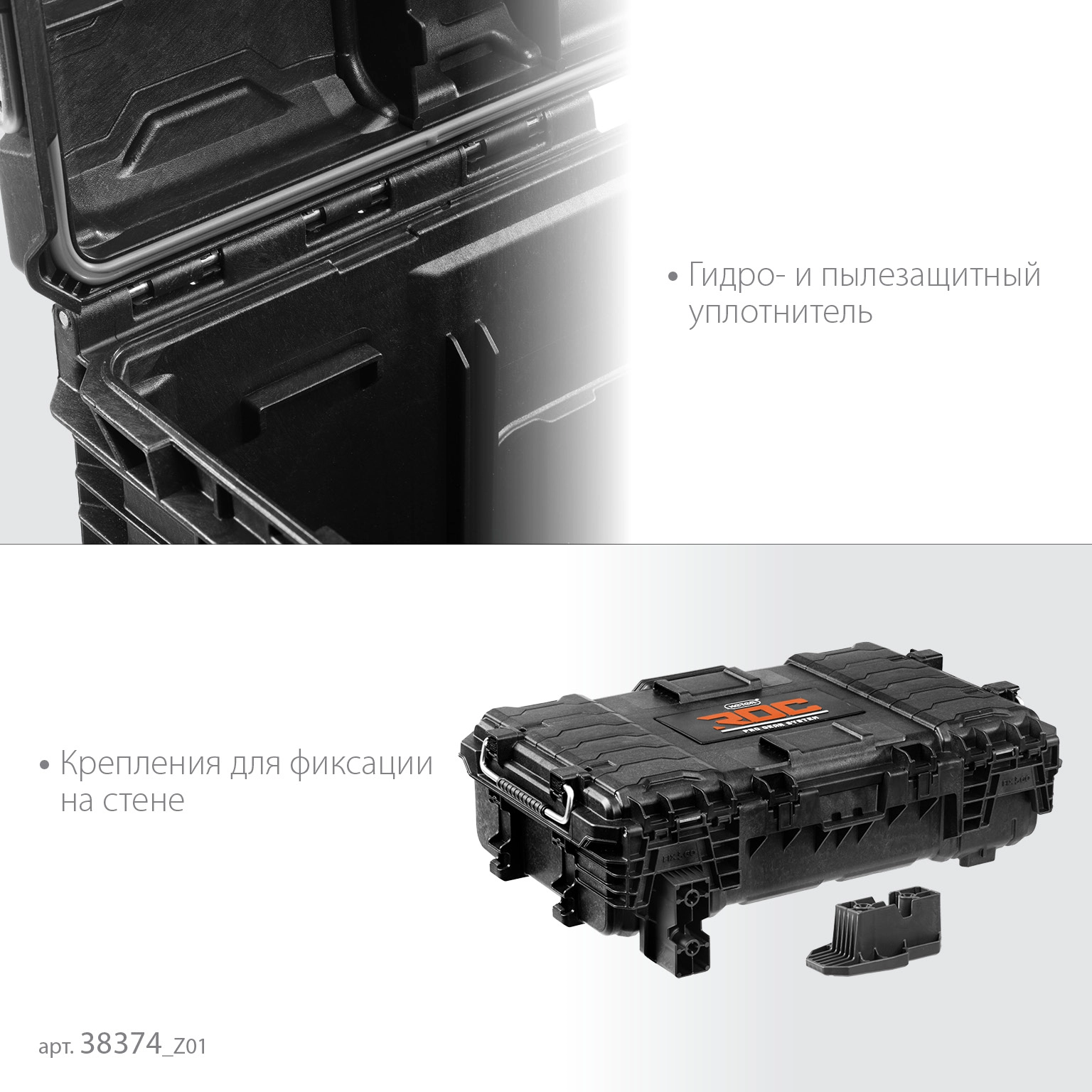 - Надежная конструкция ящика с использованием металлических замков. Наличие уплотнителя для защиты инструмента от пыли и влаги