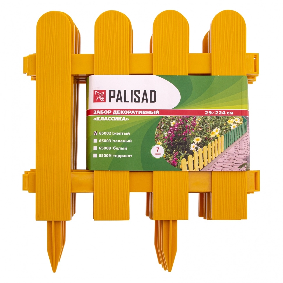 Декоративный забор Palisad «Классика» 65002 желтого цвета, 29 х 224 см, состоит из 7 секций и позволяет выделить отдельные участки придомовой или дачной территории.