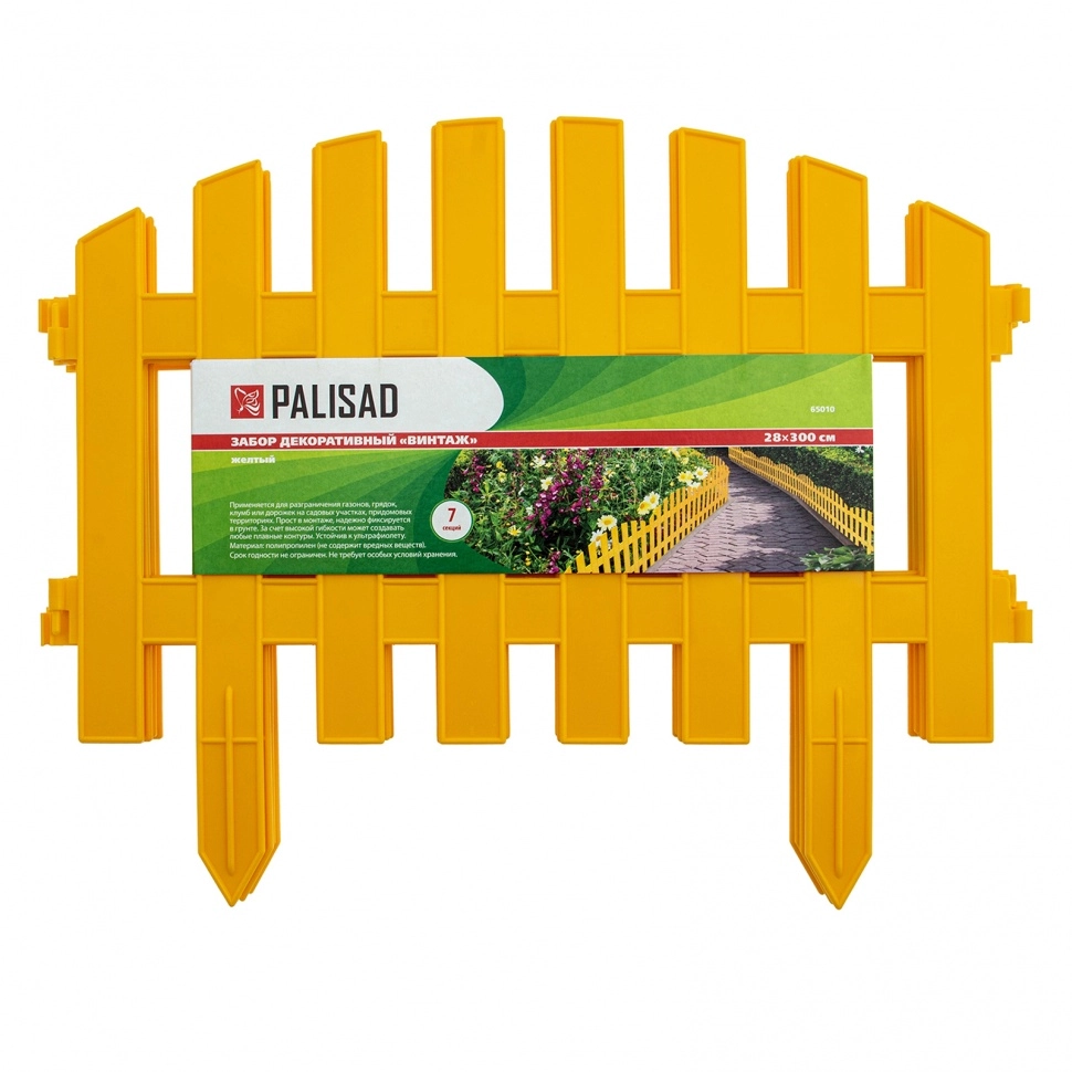 Желтый декоративный забор Palisad «Винтаж» 65010, 28 х 300 см, предназначен для зонирования территории.