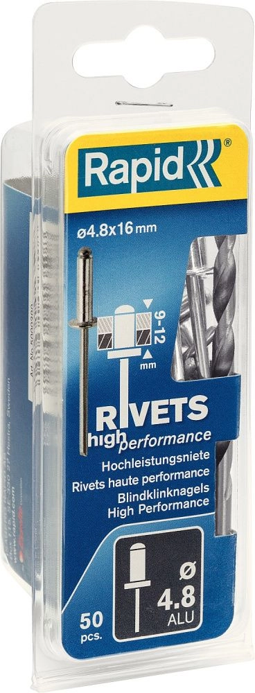ПроизводителиЗаклепка вытяжная алюминий/сталь DIN 7337 Ø 4.8x16мм, 50шт. (5000390) RAPID