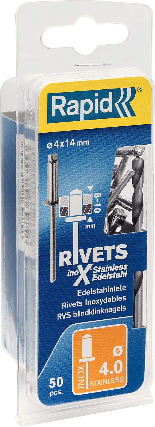 ПроизводителиЗаклепка вытяжная А2 DIN 7337 Ø 4.0x14мм, 50шт. (5000395) RAPID
