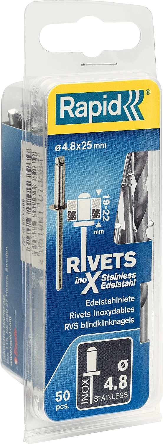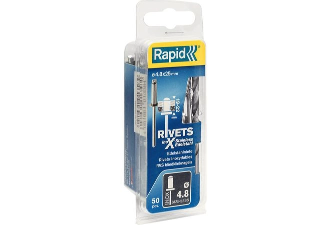ПроизводителиЗаклепка вытяжная А2 DIN 7337 Ø 4.8x25мм, 50шт. (5000398) RAPID