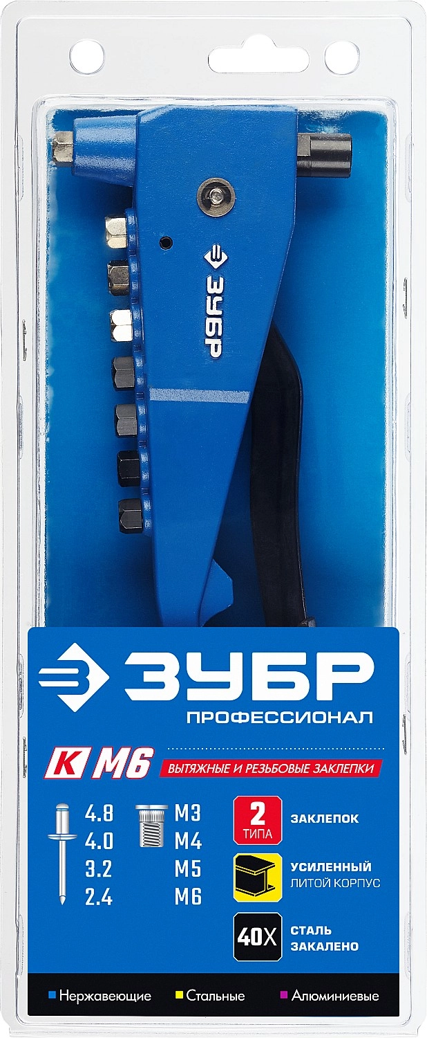 ПроизводителиЗаклепочник резьбовой М3-М6, 2.4-4.8мм "К-М6" (31196) ЗУБР