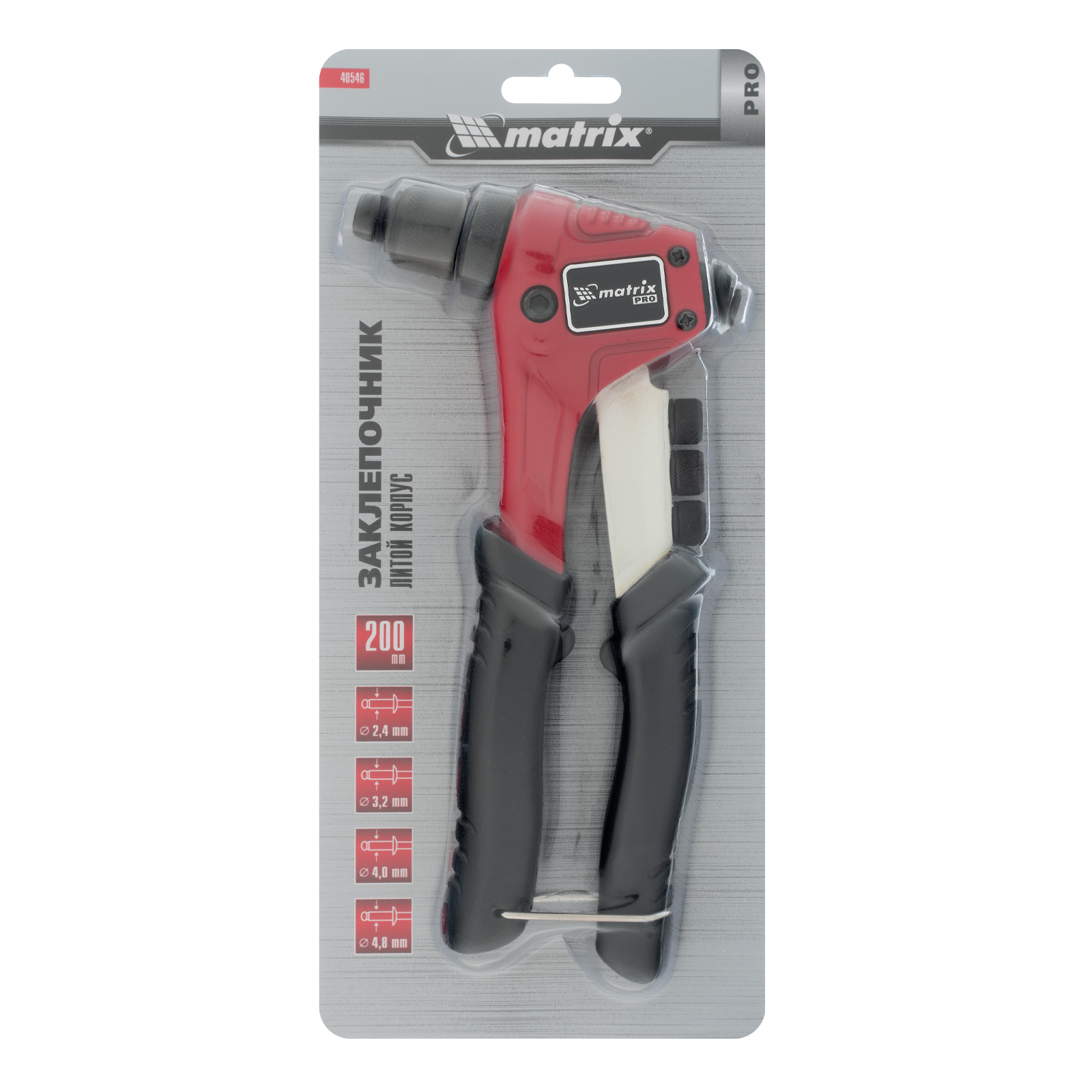 ПроизводителиЗаклепочник литой 200 мм (заклепки 2,4-3,2-4,0-4,8) PRO (40546) MATRIX