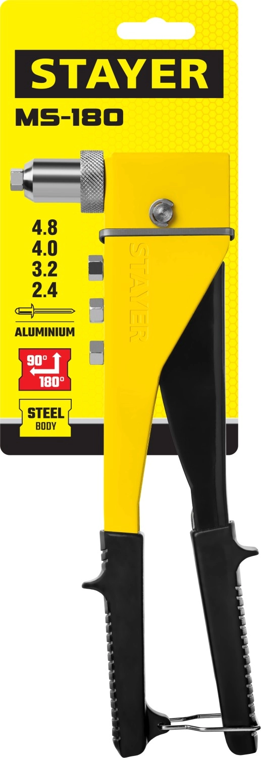 ПроизводителиЗаклепочник переставной 90-180°, 2.4-4.8 мм MaxFix "MS 180" (3107_z01) STAYER
