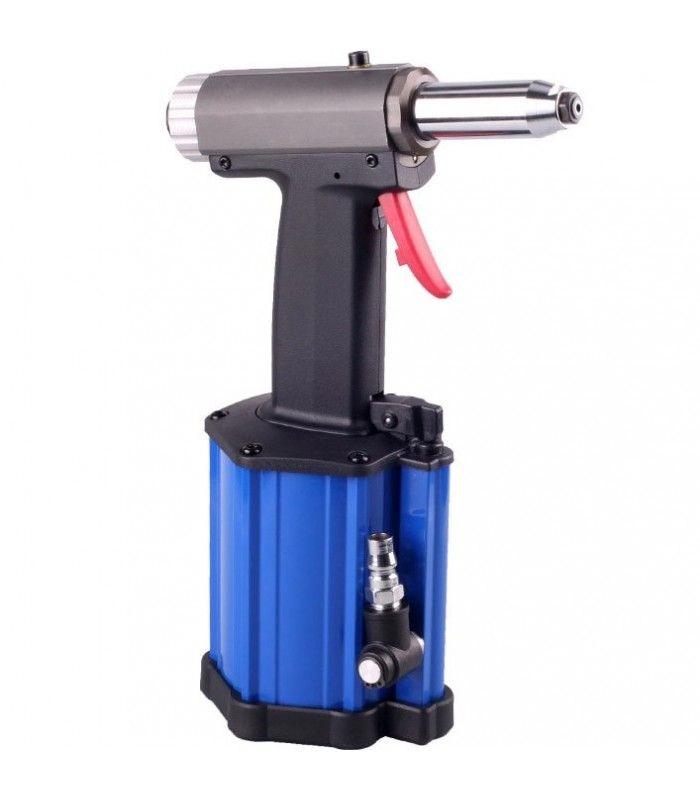 Замена масла производится путем откручивания винта, расположенного на верхней части инструмента. Заклепочник поставляется в алюминиевом кейсе.