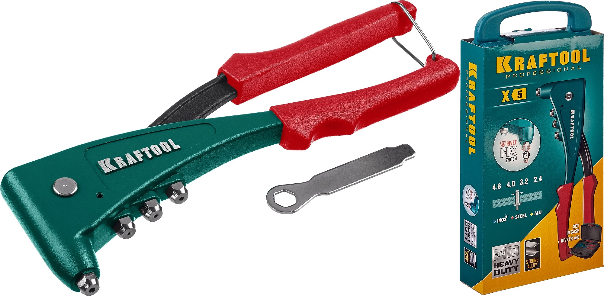 ПроизводителиЗаклепочник 2.4-4.8мм, усиленный, с заклепками "X-5F" (31173-H6_z01) KRAFTOOL