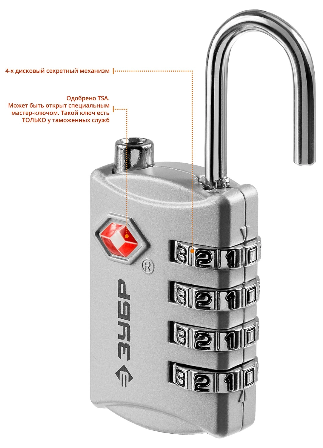 ПроизводителиЗамок TSA багажный, кодовый, 4 диска "Профессионал" (37144) ЗУБР