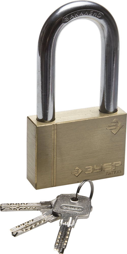 ПроизводителиЗамок ЗУБР "ЭКСПЕРТ" навесной, латунный корпус, классическая форма, удлиненная закаленная дужка, 70м