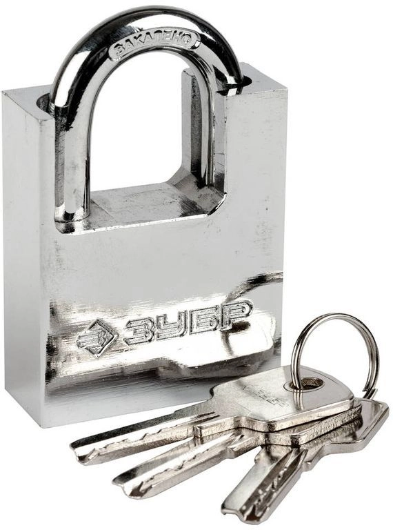 ПроизводителиЗамок ЗУБР "ЭКСПЕРТ" навесной, стальной корпус, закаленная дужка, с дополнительной защитой, 50мм