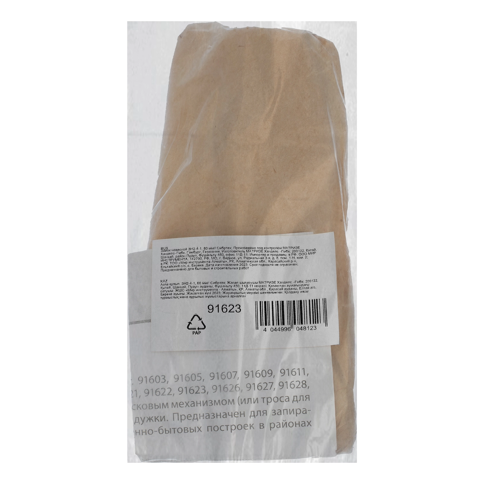 Комплектация: Замок - 1 шт, Ключ - 3 шт, Кольцо для ключей - 1 шт, Паспорт - 1 штПроизводитель: ООО "Мир инструмента", Россия