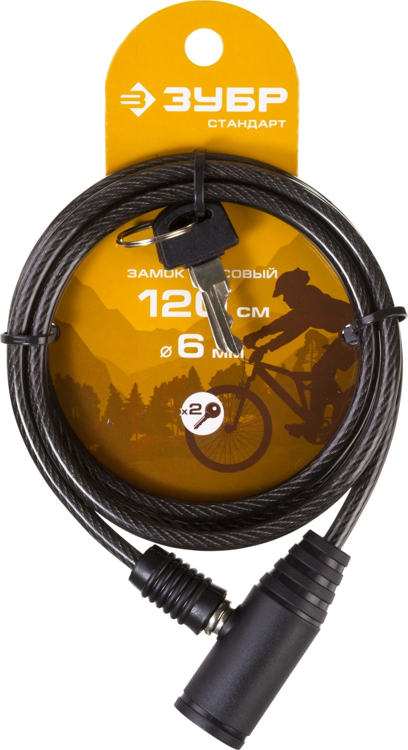 ПроизводителиЗамок "СТАНДАРТ", тросовый, 2 ключа в комплекте, длина троса 1200мм, d 6мм (37269-120) ЗУБР