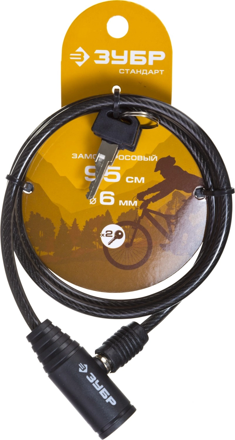 ПроизводителиЗамок "СТАНДАРТ", тросовый, 2 ключа в комплекте, длина троса 950мм, d 6мм (37269-95) ЗУБР