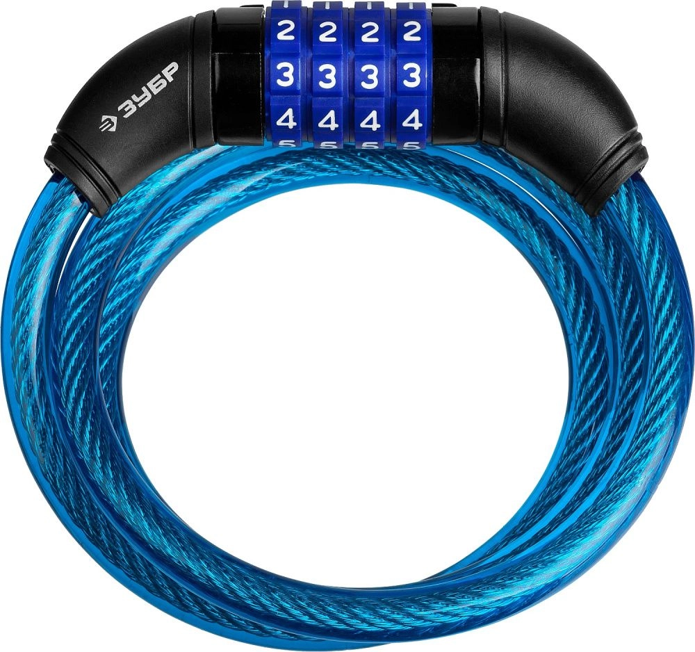 ПроизводителиЗамок ЗУБР "ПРОФЕССИОНАЛ", тросовый, кодовый, с изменяемым кодом, длина троса - 950мм, d 10мм