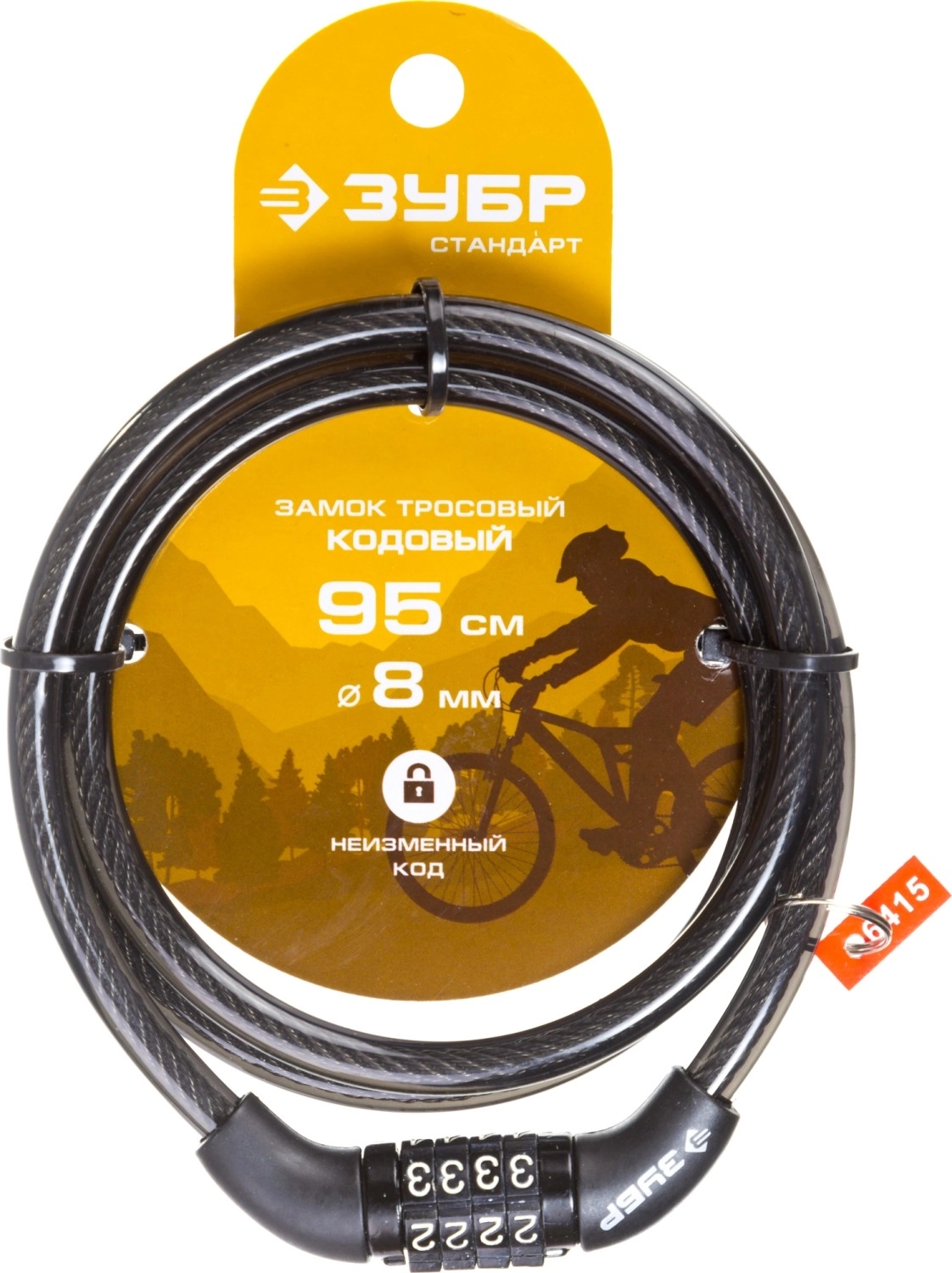 ПроизводителиЗамок, тросовый, кодовый, с неизменяемым кодом, длина троса - 950мм, d 8мм. (37267-95) ЗУБР