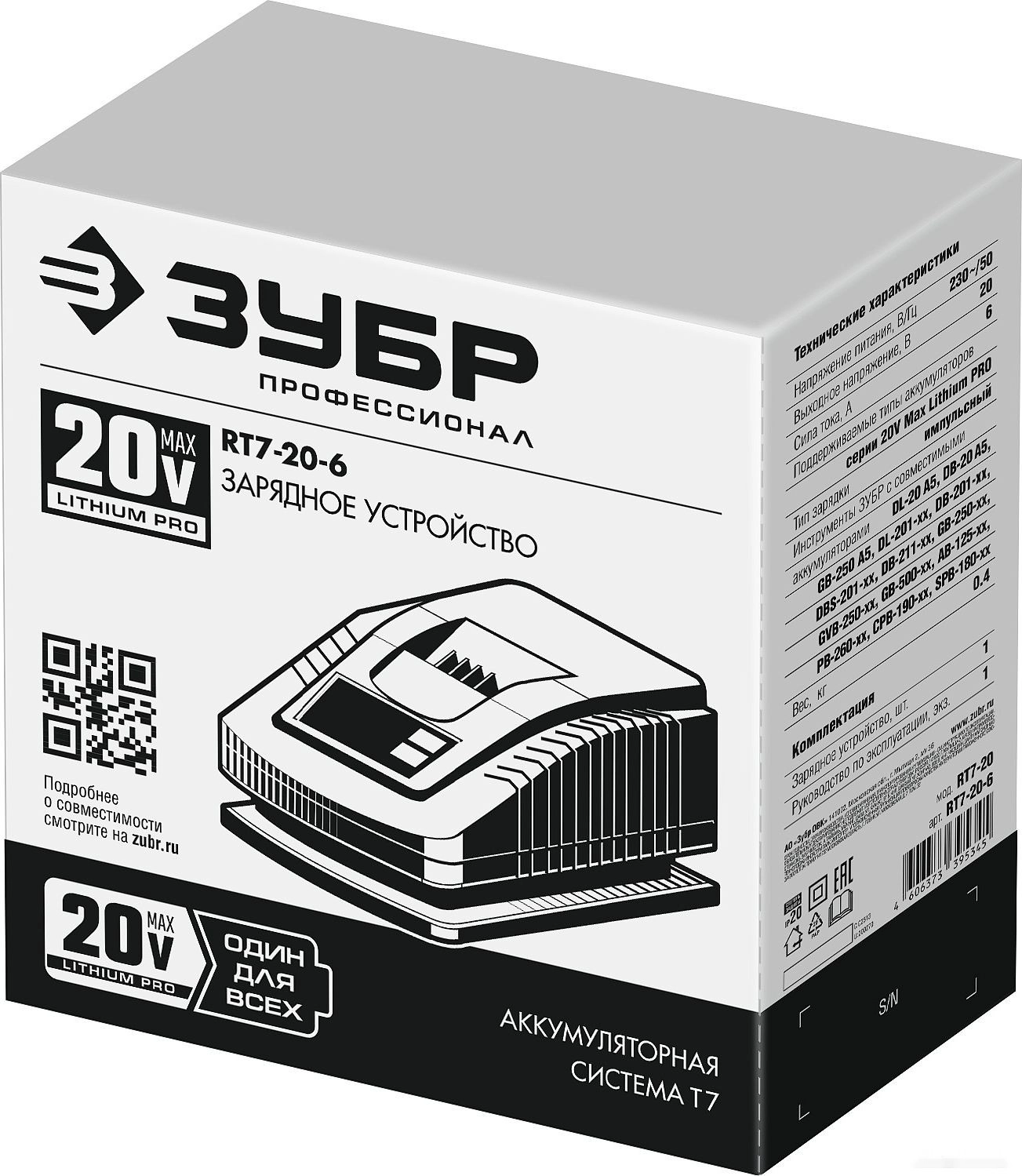 ХарактеристикиАртикул RT7-20-6Бренды ЗубрСтрана производства КитайАккумуляторная система ЗУБР Li-Ion PRO 20BТип зарядноеНапряжение аккумулятора 16-20Назначение для садового инструмента, для строительного инструментаТип аккумулятора Li-ionВыходное напряжение 20Индикатор уровня зарядки ДаБеспроводная зарядка НетОписание товара обновлено 28.01.2026 17:04:54Зарядное устройство Зубр RT7-20-6, предназначено для зарядки батарей аккумуляторного инструмента.