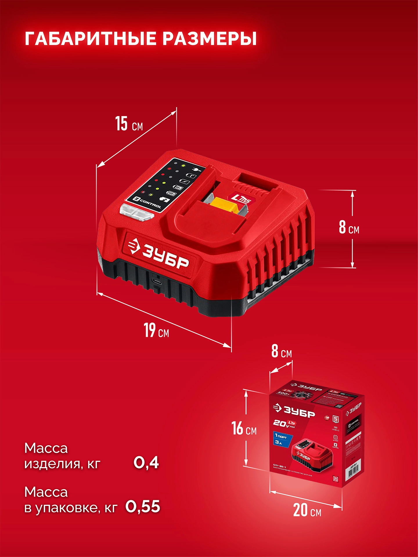 ПроизводителиЗарядное устройство 20.0 В, для LMS Li-Ion АКБ, 1 порт х 3.0 А/h (БЗУ-20-1) ЗУБР