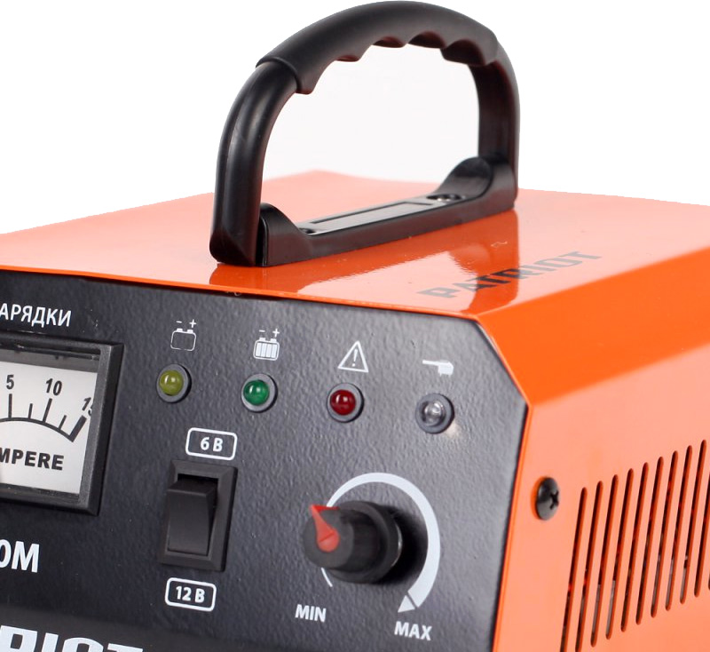 СТАНДАРТУровень качества. При классификации продуктов, имеющих схожее наименование, но обладающие различными потребительскими свойствами мы приняли следующий Вес факторов: 80% - подтвержденный ресурс, 15% - заявленная производительность/скорость, 5% - субъективные ощущения потребителя. ПодробнееКод товара: 0062412(0)ХарактеристикиАртикул 650303415Бренды PATRIOTСтрана производства КитайГарантия 12 месяцевГабариты (ШхВхГ),мм 180х240х120Тип зарядноеНапряжение аккумулятора 6/12Назначение для автомобильных и мотоциклетных аккумуляторовЦвет оранжевыйТемпературный режим использования ˚С от -20 до +40Емкость аккумулятора 10Материал корпуса металлДлина сетевого шнура 1.5Защита от перегрева естьТип аккумулятора WETКоличество заряжаемых аккумуляторов, шт 1Наличие дисплея нетЗащита от перегрузки естьЗащита от неправильного подключения нетКоличество ступеней зарядки 8Вес 1.3Мин. Емкость заряжаемых батарей 10Номинальное напряжение батареи 12Мин. Ток зарядки 0Макс. Емкость заряжаемых батарей 150Макс. Ток зарядки 10Потребляемая мощность на заряд 400Напряжение 220Индикация заряда ДаЗарядка от сети 220 В ДаИндикация включения ДаТип кабеля сетевойШирина в упаковке 25Высота в упаковке 18Индикация режима работы ДаГлубина в упаковке 12Индикатор уровня зарядки ДаИндикация завершения зарядки ДаОписание товара обновлено 08.12.2025 13:39:27Преимущества зарядного устройства Patriot BCI-10M