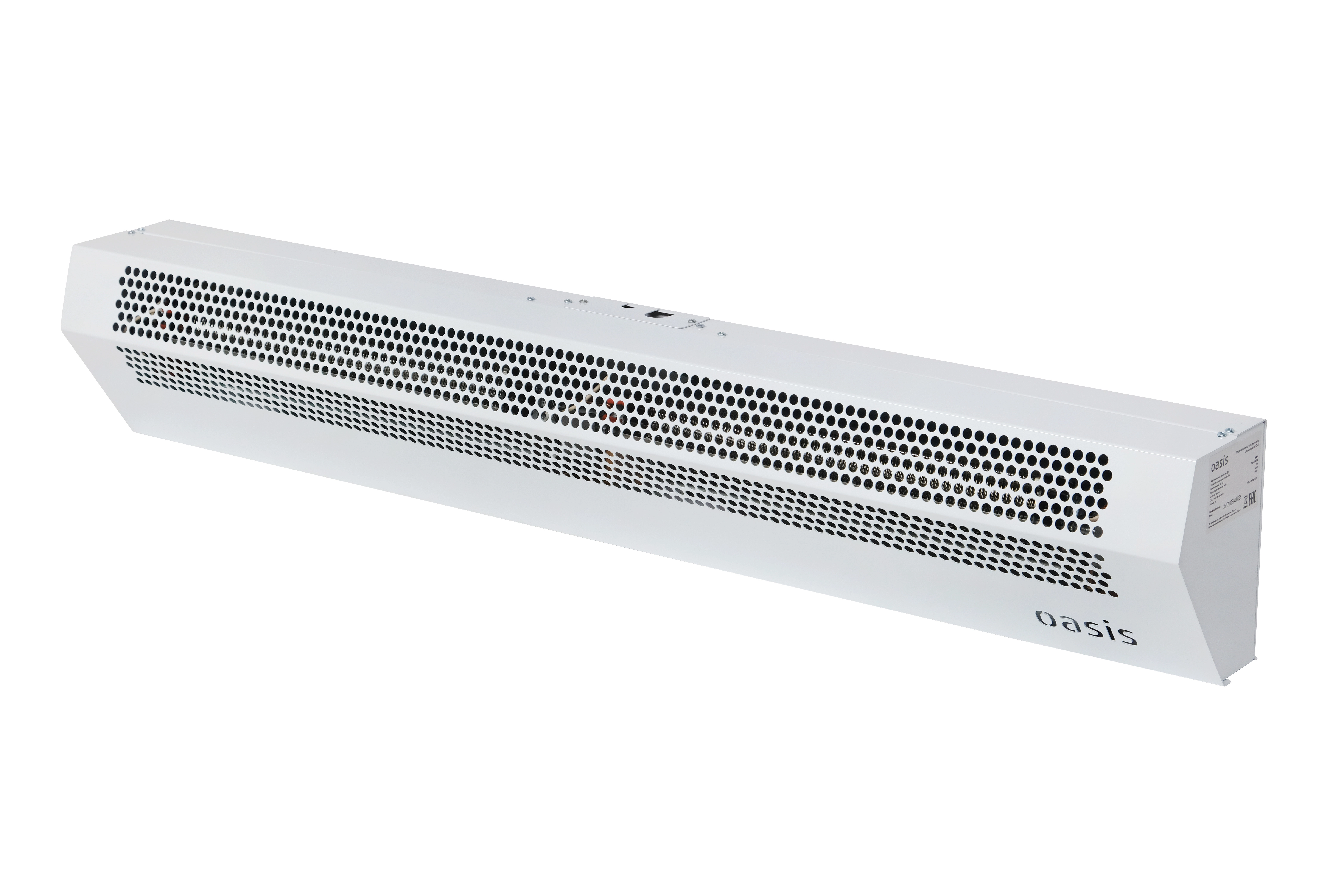 Энергоэффективный нагревательный элемент обеспечивает быстрый нагрев. В режиме работы «Вентиляция» выходящий воздух не нагревается, что полезно в тёплое время года. Система защиты от перегрева убережёт устройство от поломки. Тепловая завеса Oasis является безопасным и практичным решением как для офиса, так и для магазинов или складов.