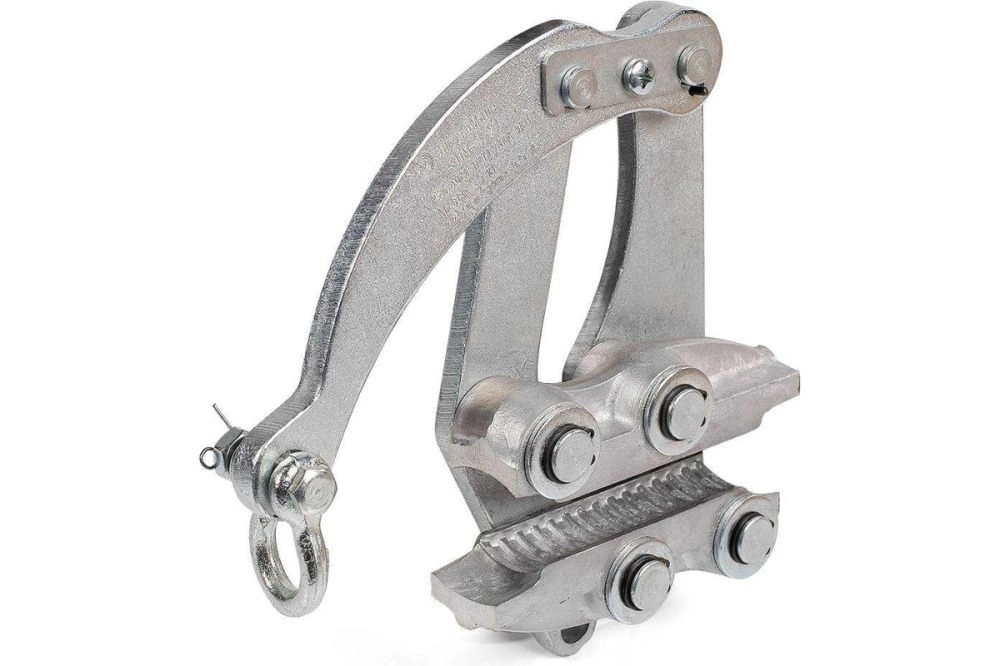 Характеристики КВТ МЗ-19/29: Диаметр кабеля: 4х(25-50) мм Рабочая нагрузка: 6 кН Вес: 2.10 кг Рычажное устройство преобразует усилие тяги в усилие захвата Тяговые зажимы при работе не повреждают изоляцию провода Характеристики