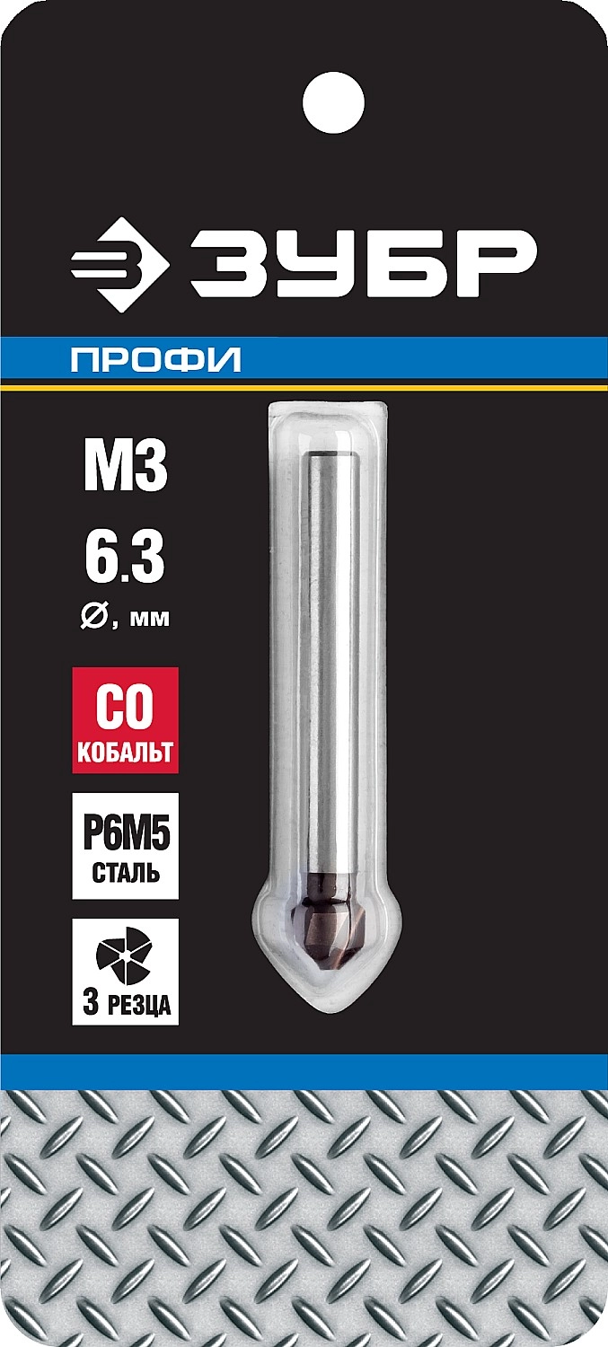 ПроизводителиЗенкер ЗУБР "ЭКСПЕРТ" конусный с 3-я реж. кром.ст.P6M5 с Co покрыт.d 6,3х45 мм, цилиндр хвост.d 5мм,