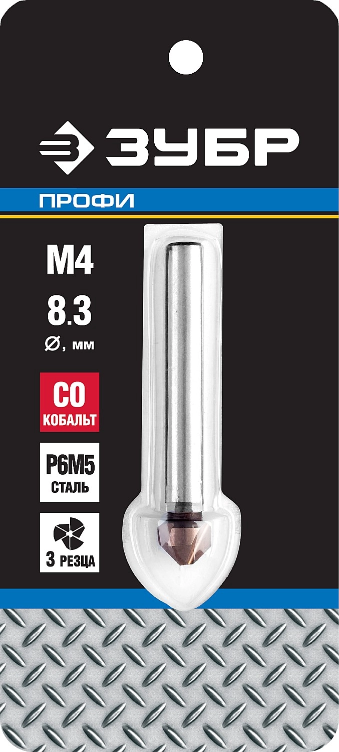 ПроизводителиЗенкер ЗУБР "ЭКСПЕРТ" конусный с 3-я реж. кром.ст.P6M5 с Co покрыт.d 8,3х50 мм, цилиндр хвост.d 6мм,