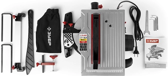 ХарактеристикиАртикул ЗПТК-210-1500Бренды ЗубрСтрана производства КитайТип торцовочнаяПотребляемая мощность 1500Цвет серый/черныйПосадочный диаметр 30Материал корпуса металл/пластикНапряжение 220Диаметр диска 210Длина сетевого шнура 2Кейс в комплекте нетРегулировка глубины реза НетПоддержание постоянных оборотов под нагрузкой НетВес 9Питание сетьГлубина пропила (дерево) 55Скорость вращения шпинделя 4500Кейс НетКоличество скоростей распила 1Ключ для смены диска ДаУгол наклона диска 45Длина 410Подключение к пылесосу естьМинимальная скорость вращения 4500Ширина 310Высота 430Глубина реза 90° 55Глубина реза 45° 35Плавный пуск нетЛазерный маркер нетСдувание опилок естьПылесборник естьПодсветка нетСерия МастарШирина пропила 120Дополнительный аккумулятор НетМаксимальная скорость вращения 4500Регулировка скорости вращения НетДлина сетевого шнура 2Максимальная ширина пропила под углом 45° 65Максимальная ширина пропила под углом 90° 120Частота 50Описание товара обновлено 08.12.2025 13:57:09Комбинированная пила ЗПТК-210-1500 2в1 совмещает в себе две пилы (настольную и торцовочную) с сохранением преимуществ обеих. Из одного типа в другой изделие переводится буквально в два действия - так же просто, как и работа с ним. Различные режимы пиления, точность пропила, защитные блокировки и качество изготовления - то, что нужно для отличного результата.