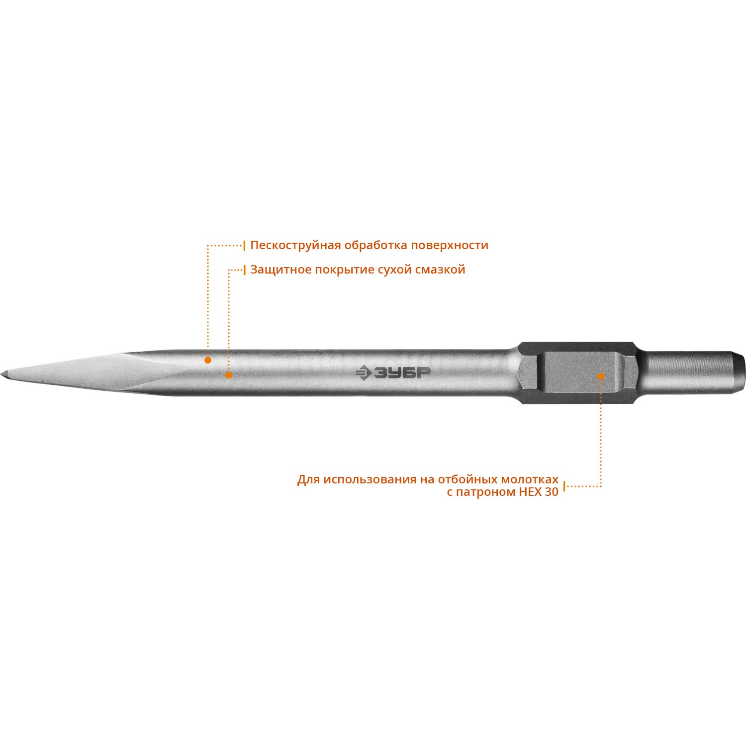 ПроизводителиЗубило пикообразное шест. HEX 30 400мм (29375-00-400) ЗУБР