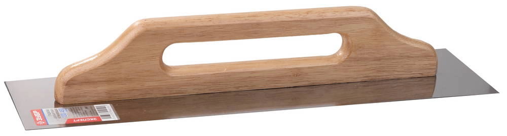 Зеркально отполированное нержавеющее полотно обеспечит надежность конструкции, лучшую защиту от коррозии, а удобная деревянная рукоять обеспечит комфортную работу при нанесении и распределении штукатурных смесей и клеевых составов.